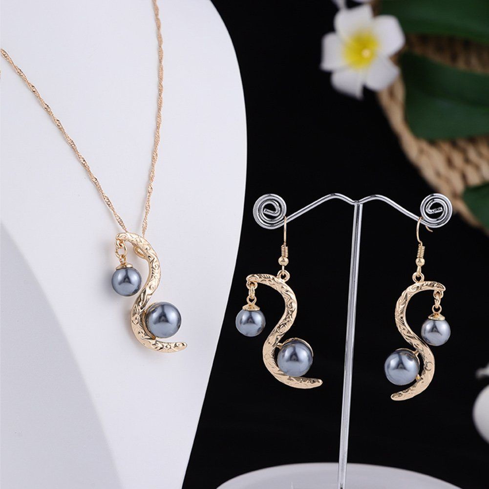 – Modeschmuck Collier mit Ohrringen Kunstperle